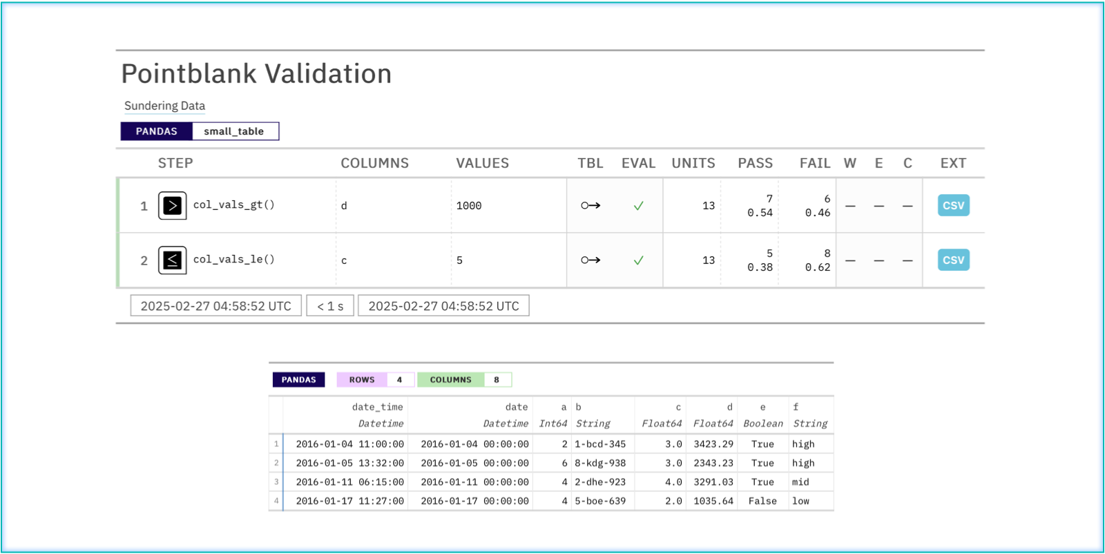 A Parquet dataset can be used for data validation, thanks to Ibis.
